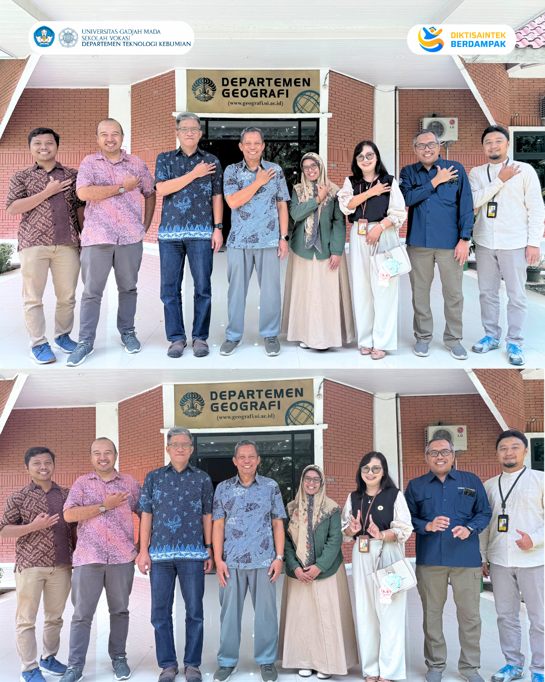Dalam rangka meningkatkan mutu dan relevansi kurikulum terhadap kebutuhan dunia kerja, Program Studi Sarjana Terapan Sistem Informasi Geografis (SIG), Departemen Teknologi Kebumian, Sekolah Vokasi, Universitas Gadjah Mada (DTK SV UGM) melaksanakan kegiatan benchmarking ke Departemen Geografi, Fakultas Matematika dan Ilmu Pengetahuan Alam, Universitas Indonesia (FMIPA UI) pada 21–22 Oktober 2025. Kegiatan ini menjadi bagian dari upaya strategis untuk memperkuat penyusunan kurikulum berbasis link and match antara dunia pendidikan dan dunia usaha, industri, serta dunia kerja (DUDIKA).