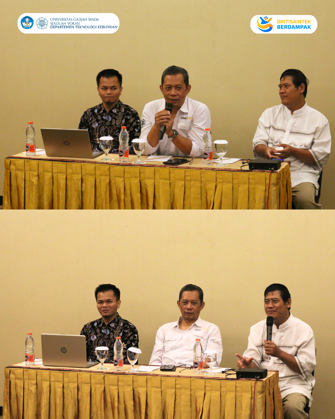 Dalam sambutannya, Ketua Departemen Teknologi Kebumian SV UGM, Dr. Taufik Hery Purwanto, S.Si., M.Si., menyampaikan bahwa transformasi kurikulum di era Revolusi Industri 4.0 dan Society 5.0 tidak hanya menekankan pada penguasaan teori, tetapi juga pada pengembangan keterampilan praktis yang sesuai dengan kebutuhan industri. “Pemanfaatan teknologi kecerdasan buatan menjadi langkah strategis untuk mempercepat digitalisasi pembelajaran vokasi. Melalui FGD ini, diharapkan muncul inovasi dalam penyusunan bahan ajar dan RPS yang berorientasi pada kompetensi dan kebutuhan dunia kerja,” ujarnya. Alif Subardono, S.T., M.Eng. selaku Manajer Unit Jaminan Mutu SV UGM memberikan sambutan dalam penyelanggaraan kegiatan ini. Beliau menyampaikan bahwa pentingnya penggunaan teknologi dalam membantu dalam pembuatan kurikulum.