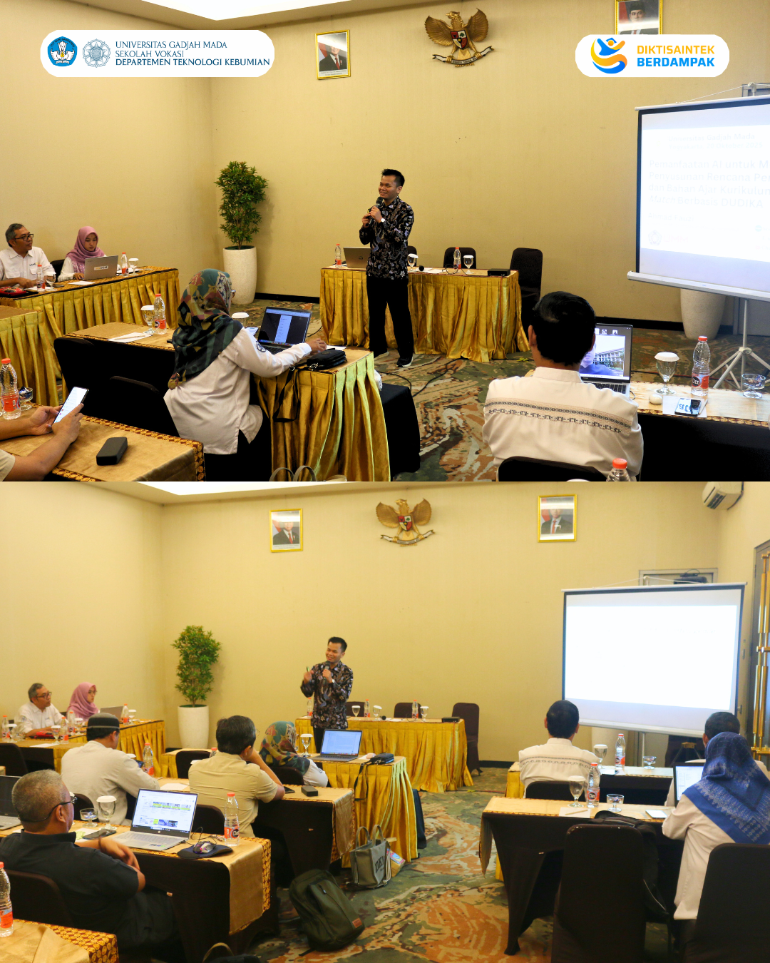 Yogyakarta, 20 Oktober 2025 — Dalam upaya memperkuat relevansi kurikulum pendidikan vokasi terhadap kebutuhan dunia usaha, dunia industri, dan dunia kerja (DUDIKA), Program Studi Sarjana Terapan Sistem Informasi Geografis (SIG) Departemen Teknologi Kebumian Sekolah Vokasi Universitas Gadjah Mada (DTK SV UGM) menyelenggarakan Focus Group Discussion (FGD) ke-2 bertajuk “Pemanfaatan Teknologi Kecerdasan Buatan (Artificial Intelligence/AI) dalam Penyusunan Bahan Ajar dan Rencana Pembelajaran Semester (RPS)”. Kegiatan ini merupakan bagian dari rangkaian Hibah Kurikulum Link and Match yang dilaksanakan di Grand Kangen Hotel Yogyakarta.
